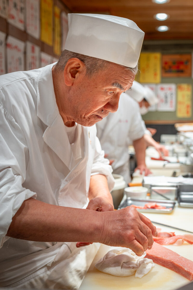 とにかく素晴らしく瑞々しい最高鮮度のマグロを、親方の澱みない迫力ある技で芸術品に。