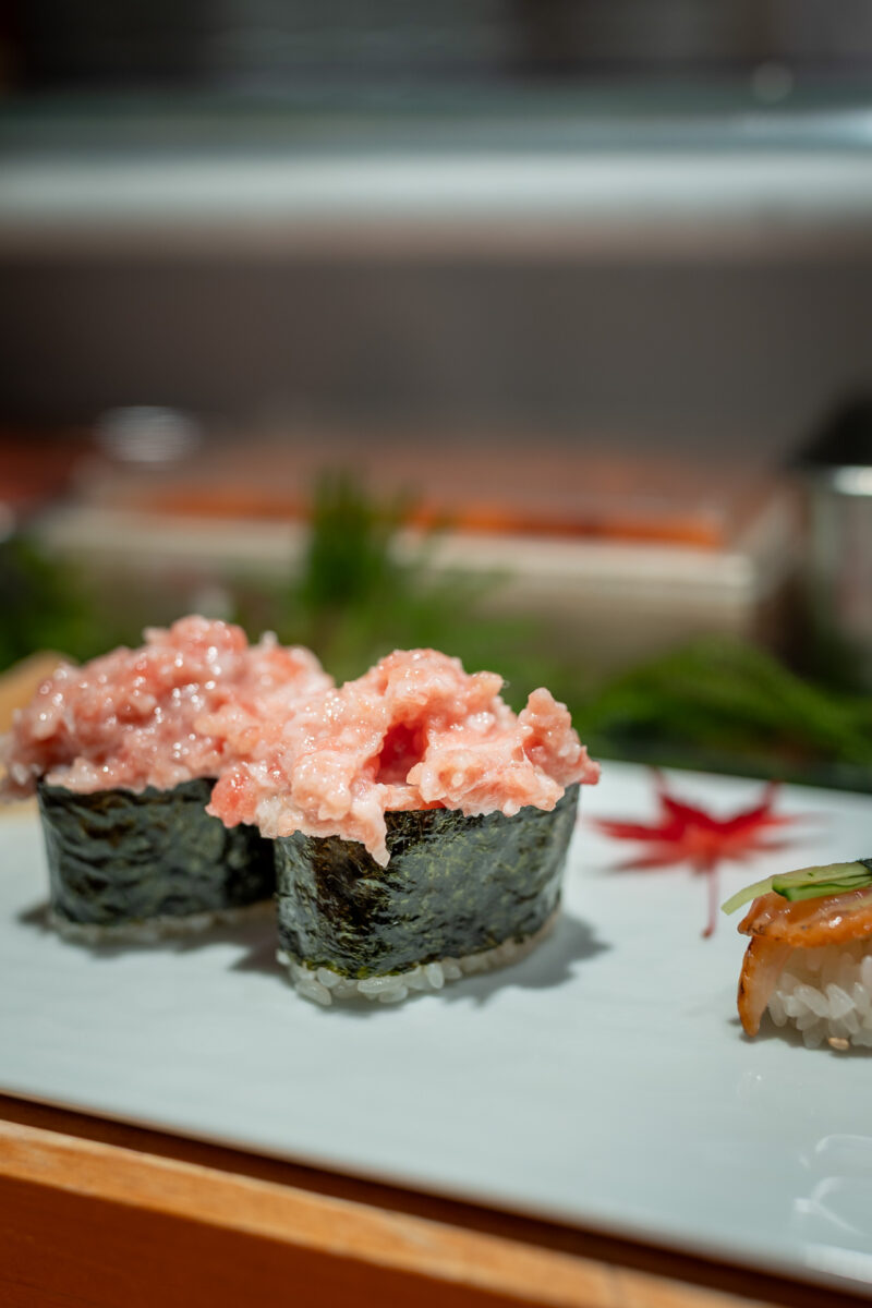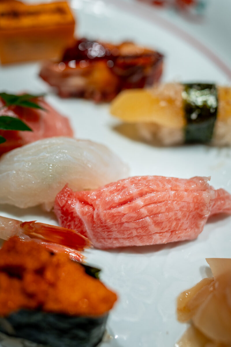 口に入れると、今まで味わったことのない脂がスッと溶けて広がる旨みに、感動でした。このあと、写真にありませんがブランドマグロの「ひがしもの」もいただきました。赤身でしたが、全く鉄臭さがなくてまったりとした舌触りも堪能しました。